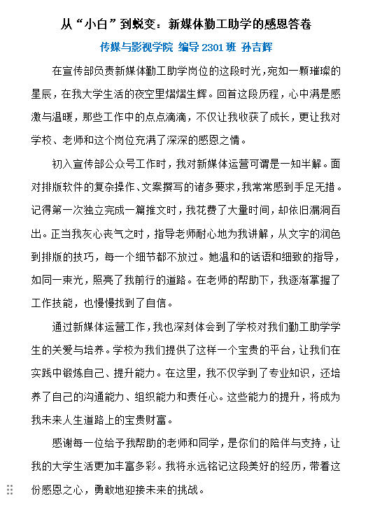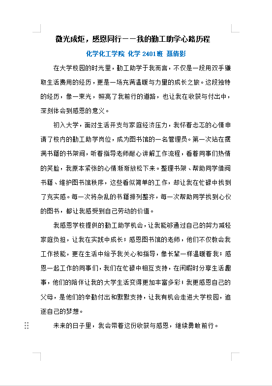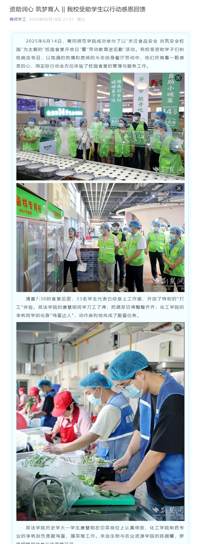 2.“大学生-助勤帮困”项目丰富了学校资助育人体系。学校在2025年积极探索设置更多勤工助学岗位,引导家庭经济困难学生参与学业帮扶、社会实践和志愿服务中。各学院积极推进“全方位、全过程”的劳动感恩等资助育人活动,营造校园“暖人心 正能量”的资助宣传氛围,强化了资助育人理念。